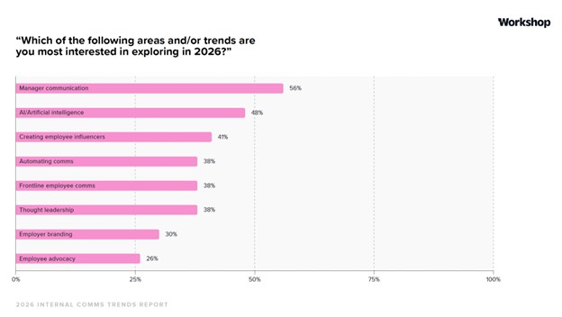 More than half of communicators (56%) say manager communication is their top focus for 2026. At the same time, only 4% believe managers are very effective at cascading messages.